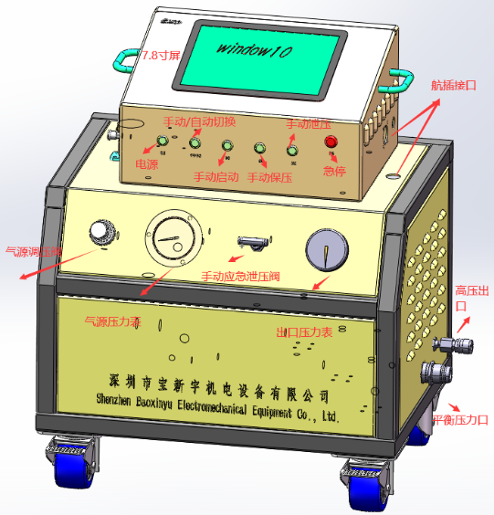 1:整個測試裝置采用模塊化疊加式設(shè)計方案,每個功能模塊相對獨立,功能模塊之間采用快速接頭連接,方便拆裝和運輸。